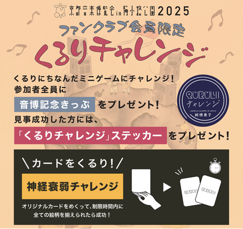 音博会場内、FCブースにてくるりの名前にちなんだミニゲーム「くるりチャレンジ」にご参加いただけます!